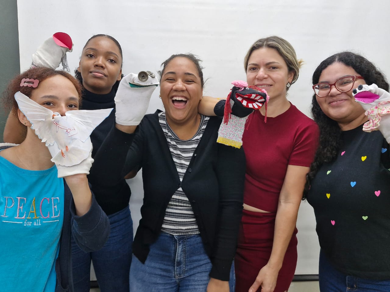 Durante a atividade, os futuros educadores mergulharam em diferentes formatos teatrais — teatro de sombras, contação de histórias, mamulengo e teatro de objetos — explorando suas particularidades e o poder de cada um como ferramenta pedagógica.