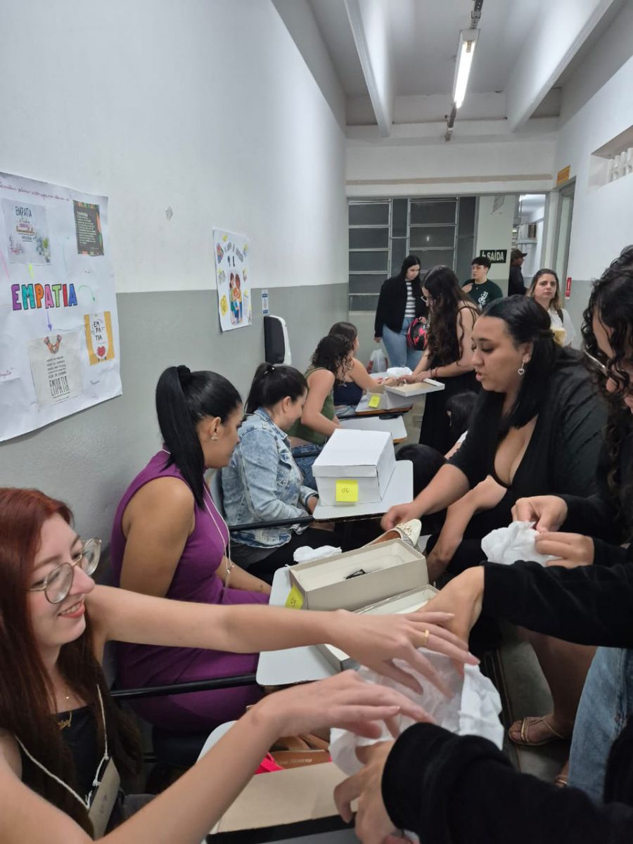 A proposta convidou cada pessoa a “vestir o sapato do outro”, ser vendada e entrar em uma sala temática, onde pôde ouvir uma narrativa e vivenciar o exercício de se colocar no lugar do próximo.